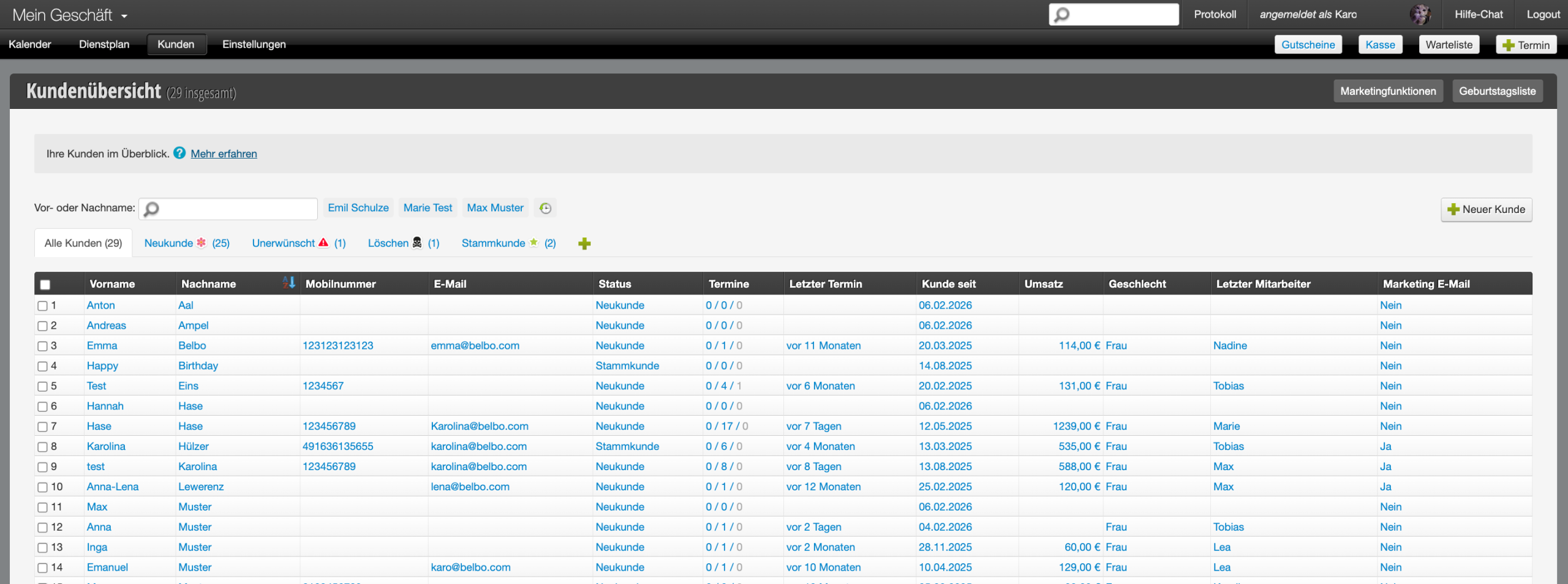 Anschließend können Sie zur Kundenübersicht zurückkehren und wie gewohnt filtern.