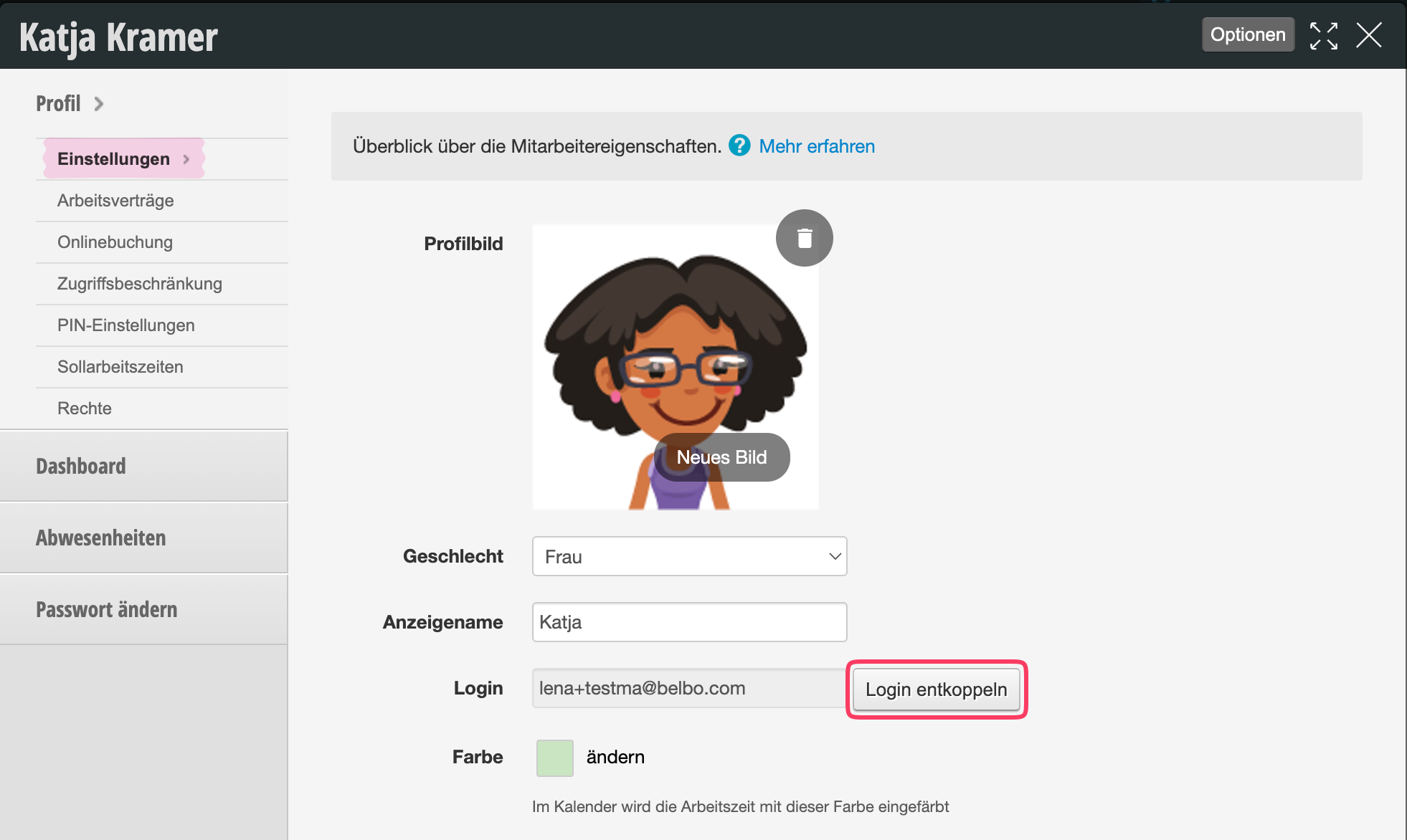 Nach der Entkopplung kann der Login unter Einstellungen > Mitarbeiter > Rechte bearbeitet oder auch gelöscht werden.