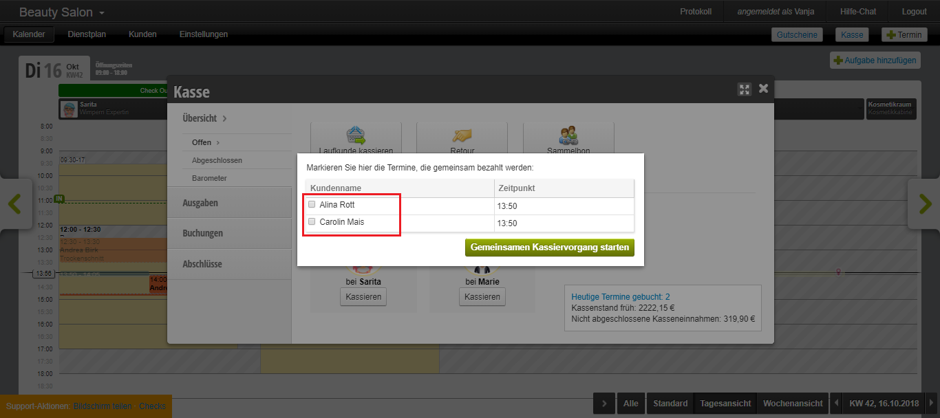 Zum Beispiel "Tagesabschluss", "Dienstplan erstellen"
